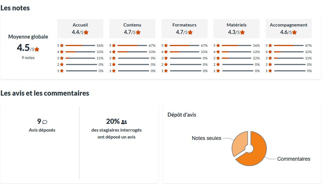 Evaluation des formations par les stagiaires (Demandeurs d’emploi) – données à Décembre 2025 :